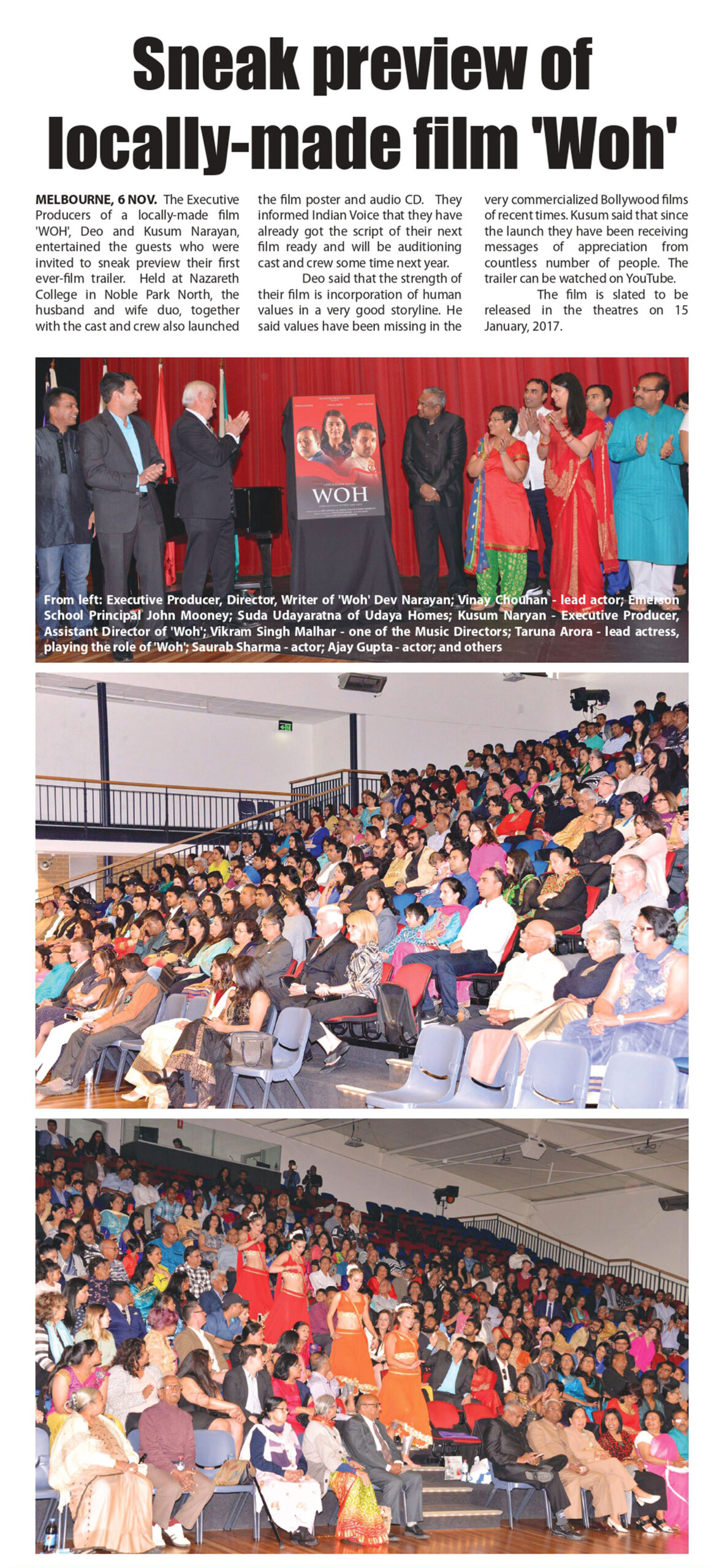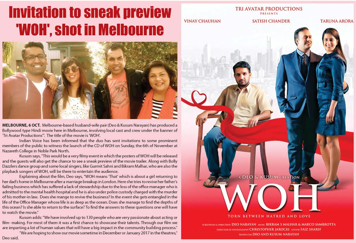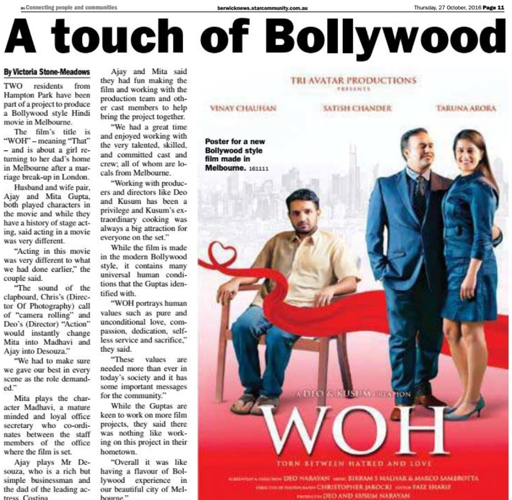 Melbourne, 6OCT. Melbourne-based husband-wife pair (Deo & Kusum Narayan) has produced a Bollywood type Hindi Movie here in Melbourne, involving local cast and crew under